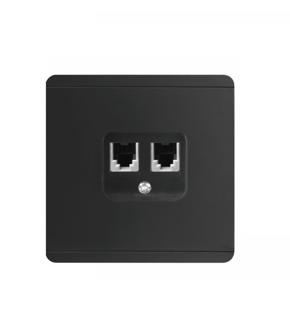 Երկակի ներդիրային LAN վարդակ՝ երկու RJ45 CAT6 UTP միացքով՝ բարձր արագության և կայուն ինտերնետ կապի համար: Հարմար է ժամանակակից ցանցային համակարգերի համար բնակարաններում, գրասենյակներում և առևտրային տարածքներում: Սև, նրբագեղ ձևավորումը հեշտությամբ համադրվում է ցանկացած ինտերիերի հետ։
