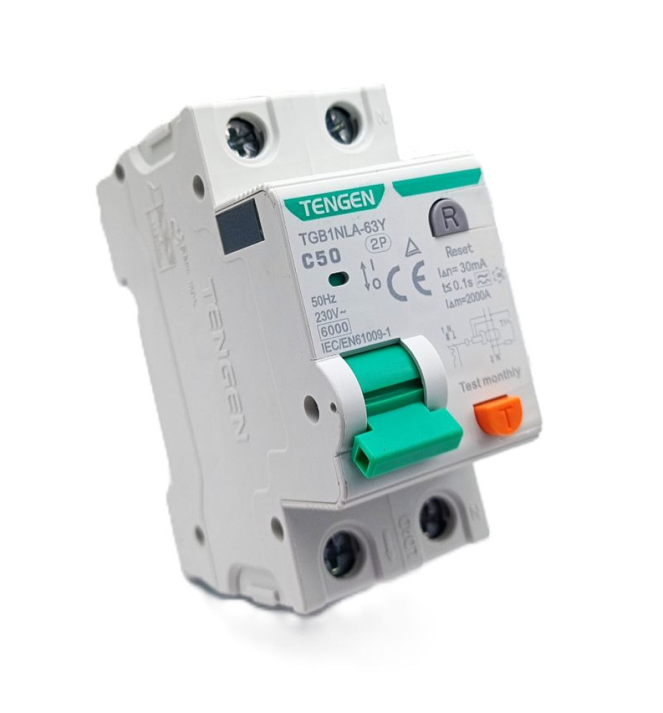 Tengen TGB1NLA-63Y-ը 2-բևեռ դիֆերենցիալ ավտոմատ անջատիչ (RCBO) է, որը նախատեսված է մեկբևեռ էլեկտրական գծերի հուսալի պաշտպանության համար։ Սարքը միաժամանակ պաշտպանում է գերբեռնվածությունից, կարճ միացումից և հոսանքի արտահոսքից, ապահովելով մարդկանց և էլեկտրասարքերի անվտանգ շահագործումը։