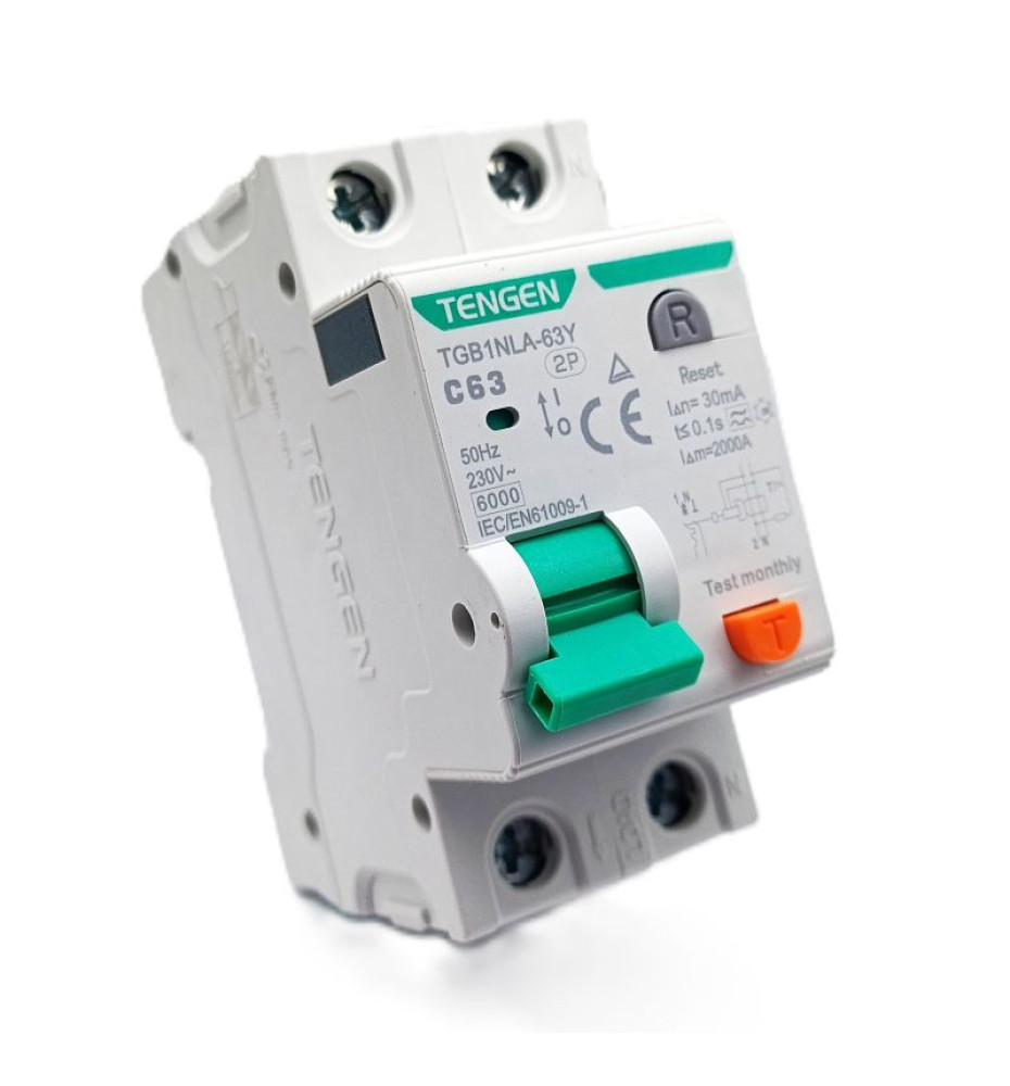 Tengen TGB1NLA-63Y-ը 2-բևեռ դիֆերենցիալ ավտոմատ անջատիչ (RCBO) է, որը նախատեսված է մեկբևեռ էլեկտրական գծերի հուսալի պաշտպանության համար։ Սարքը միաժամանակ պաշտպանում է գերբեռնվածությունից, կարճ միացումից և հոսանքի արտահոսքից, ապահովելով մարդկանց և էլեկտրասարքերի անվտանգ շահագործումը։