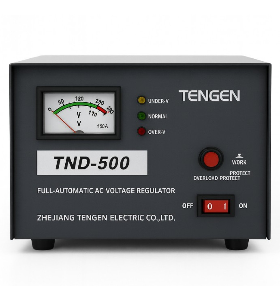 TND 0.5kVA AC լարման կայունացուցիչը միաֆազ ավտոմատ լարման կարգավորիչ է՝ նախատեսված կենցաղային տեխնիկայի, գրասենյակային սարքավորումների և զգայուն էլեկտրոնիկայի անվտանգ աշխատանքի ապահովման համար։ Ունի 0.5 կՎտ (500 ՎԱ) հզորություն և արդյունավետ կերպով կայունացնում է լարման տատանումները՝ պաշտպանելով սարքերը ցածր, բարձր լարումից և էլեկտրական խանգարումներից։